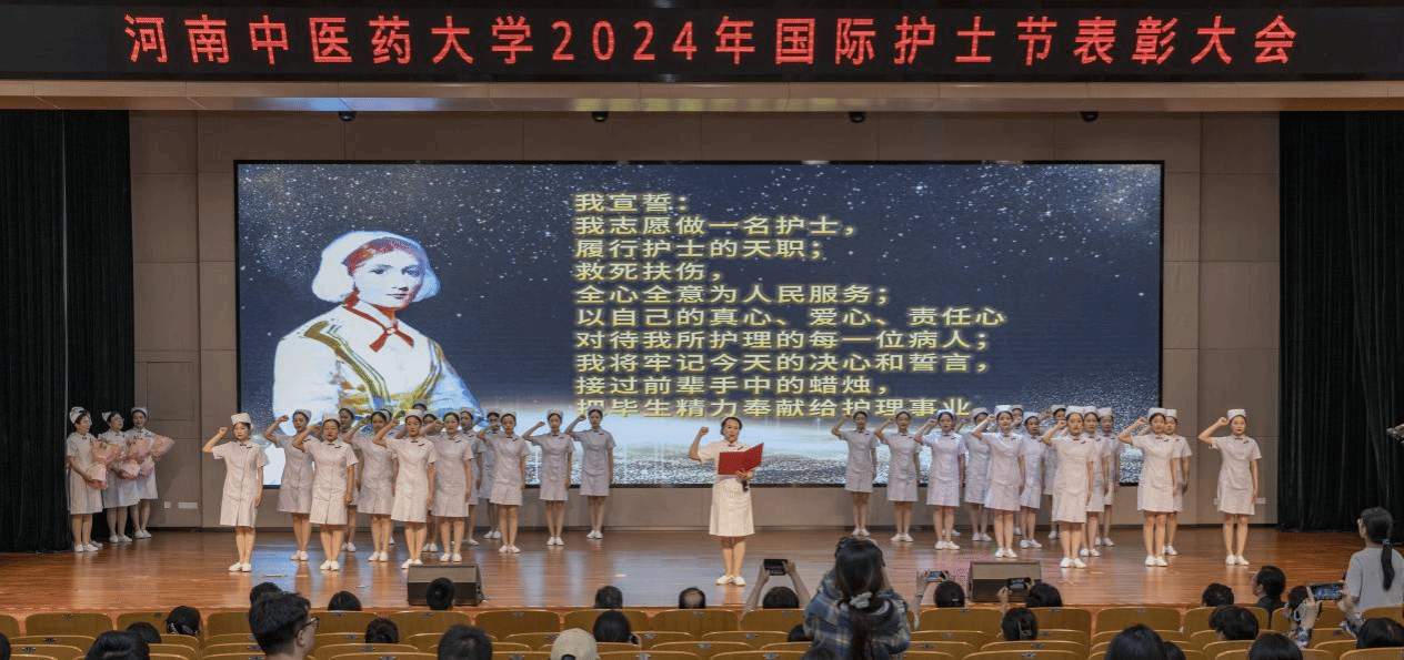 张加民在主持讲话中强调,全校护理师生及附属医院护理工作者要坚守“保护生命、减轻痛苦、促进健康”崇高誓言,向榜样学习,向先进看齐,全心全意为人民健康服务,努力为健康中国建设贡献自己的力量,共同创造护理事业更加美好的明天。