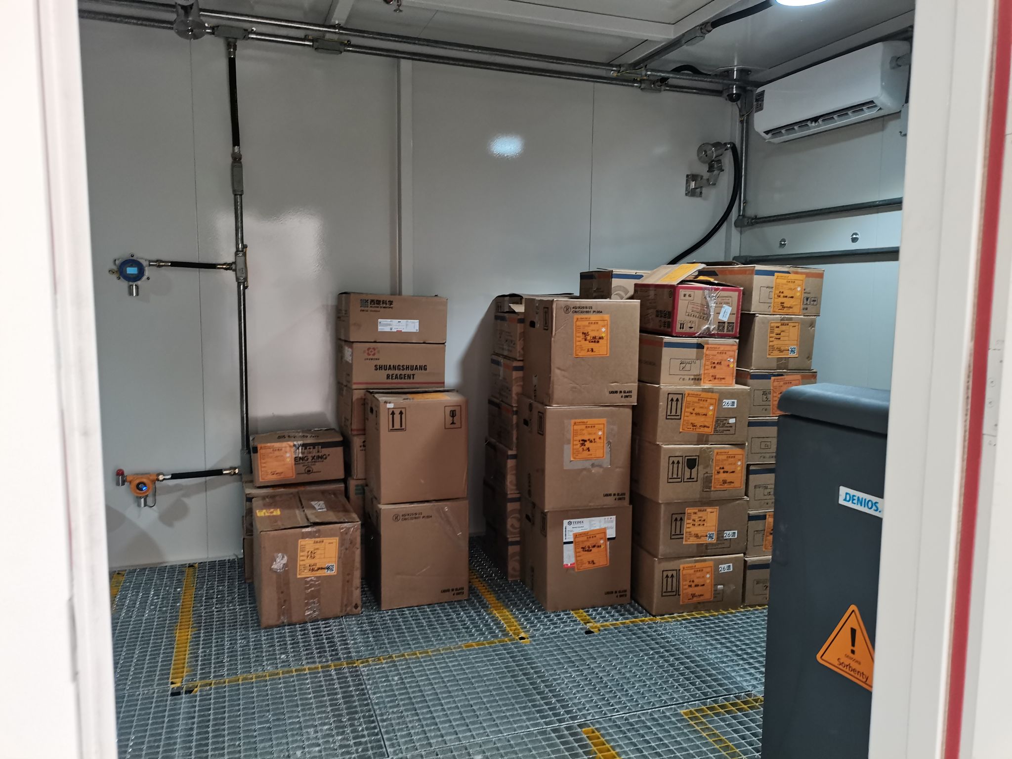经过严格的调试运转及极端天气考验,该暂存点于5月7日正式启用。通过前期的校验、核对、规范包装及封存工作,5月11日,首批包括实验室废液、废试剂空瓶、过期试剂以及实验室沾染物等在内的危险废物已顺利转运至暂存点。