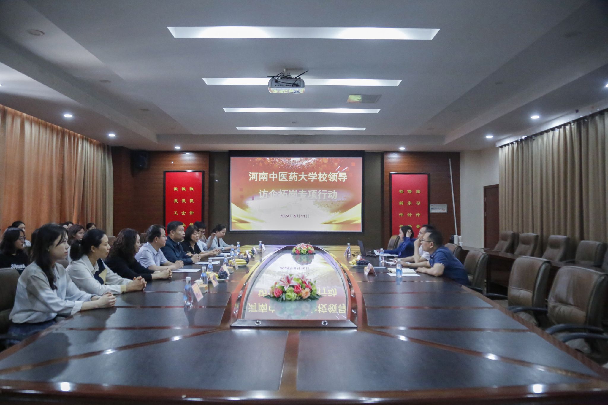 本网讯(文/姚湘 图/曹艺飞 肖启帆) 2024年5月11日,在2024届毕业生即将毕业之际,校党委副书记朱建光带领学工部、本草书院、尚真书院师生代表一行24人赴河南张仲景大药房股份有限公司郑州总部访企拓岗、召开宣讲会,拓宽毕业生就业渠道,促进高质量就业。