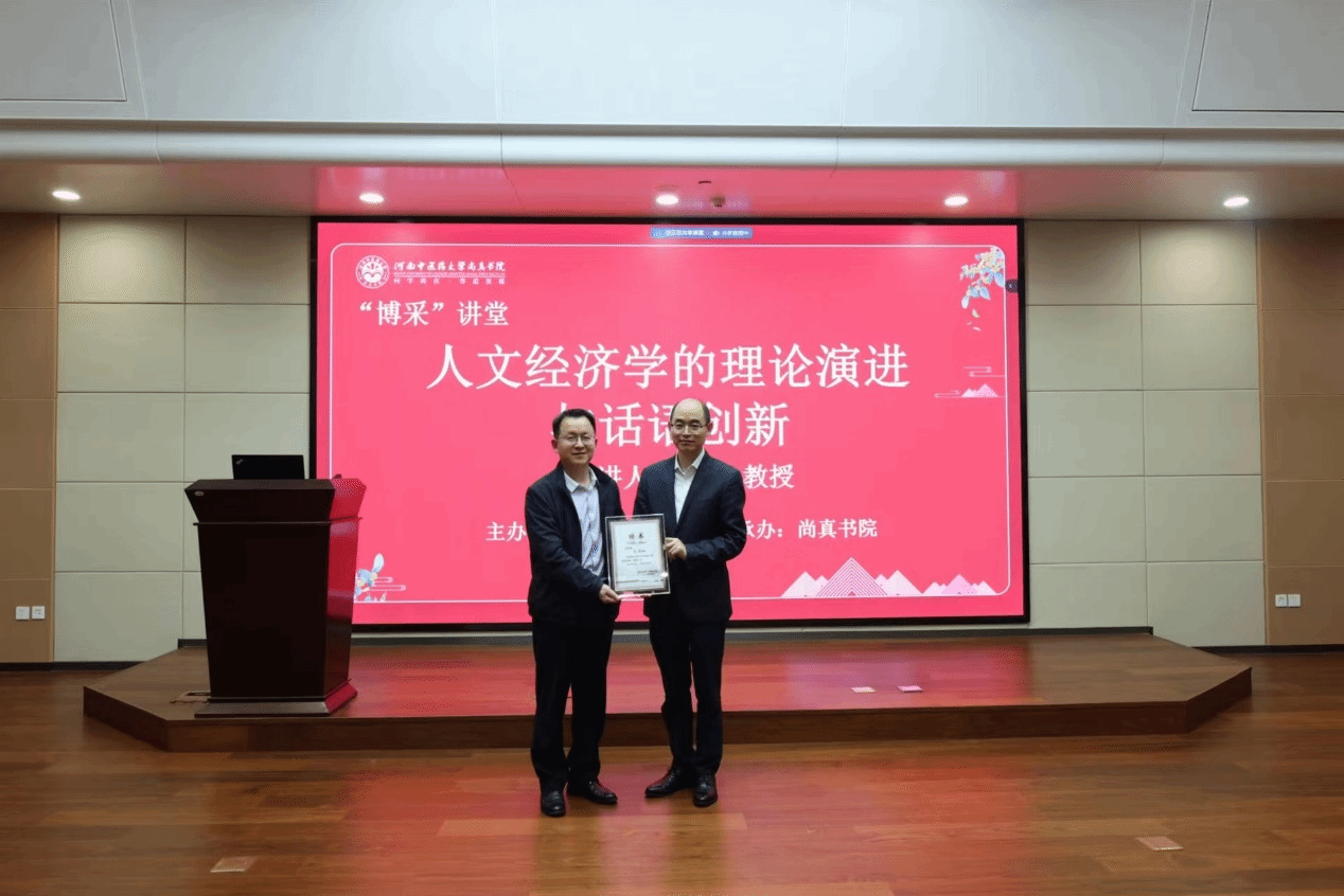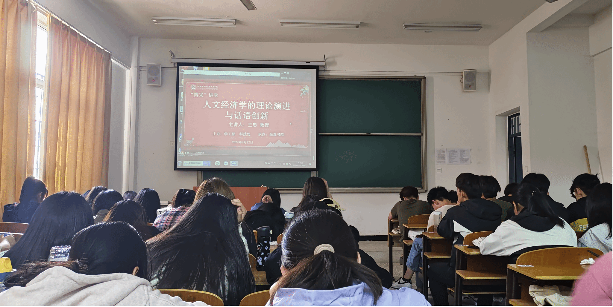 本网讯(文/李婧宜 吴林原 图/吕歌)为进一步帮助学生加强专业认知,拓展学术视野,提升人文素养,2024年4月13日下午,尚真书院邀请澳门城市大学王忠教授开展“博采讲堂”专题讲座——人文经济学的理论研究与话语创新。讲座由尚真书院党委副书记苏峰主持,继续教育学院党委副书记徐强,管理学院副院长王孺,尚真书院党委副书记、副院长李志轩参加,管理学院文化产业管理专业老师、尚真书院2021级文化产业管理专业、2023级公共管理类学生现场聆听,2023级文化产业管理专业学生线上同步参与。
